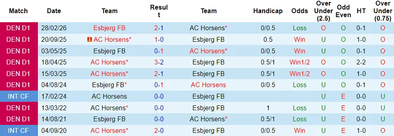 Năm trong số 7 trận sân nhà gần đây thuộc khuôn khổ Danish 1st Division xuất hiện từ 3 bàn thắng trở lên. Kịch bản tương đối quen thuộc ấy dự kiến tái diễn khi Horsens cùng Esbjerg thi đấu lượt 4 của giai đoạn Promotion mùa 2025/26.