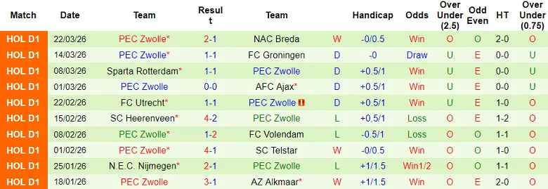 – Thống kê kết quả 10 trận gần nhất của PEC Zwolle