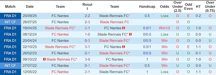Lịch sử đối đầu nghiêng hẳn về Rennes. Họ thắng 7/10 lần gặp gần nhất và toàn thắng trong các lần tiếp Nantes trên sân nhà. Điều này không chỉ là thống kê, mà còn là lợi thế tâm lý rõ rệt trước giờ bóng lăn.