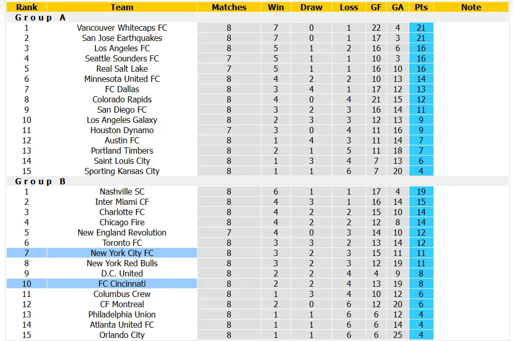 New York City không thắng tới 9 trong số 13 trận đấu gần nhất khi đối đầu với Cincinnati. Ngoài ra, họ cũng vừa trải qua mạch 4 trận sân nhà liên tiếp không biết đến chiến thắng. Cincinnati vừa để chia điểm cả 2 lượt trận gần nhất tại MLS, và không có gì ngạc nhiên nếu họ tiếp tục để chia điểm trước New York City.