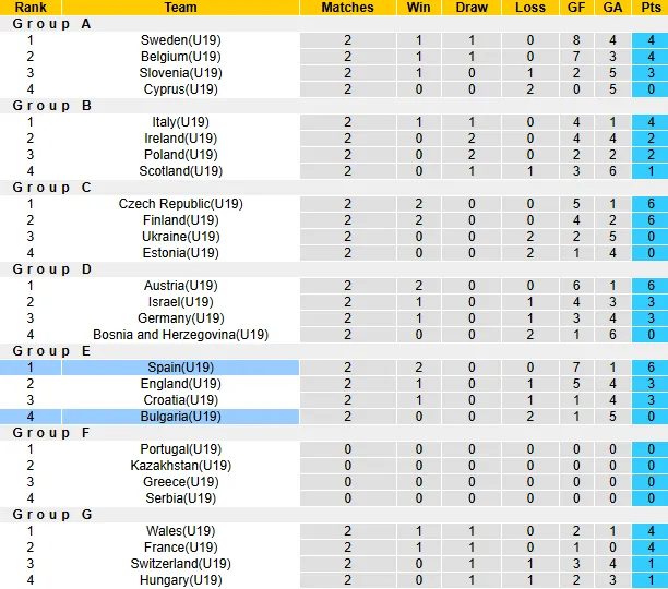 Chiến thắng tưng bừng 3-1 trước U19 Anh và 4-0 trước U19 Croatia thể hiện sức mạnh đáng sợ của đội bóng xứ sở Bò tót. Sau 2 lượt trận đầu, họ gần như đã nắm chắc suất đi tiếp vào giai đoạn 2 của League A và trận đấu với Bulgaria chỉ còn mang ý nghĩa thủ tục để khẳng định ngôi đầu bảng.