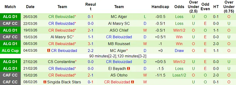 – Thống kê kết quả 10 trận gần nhất của CR Belouizdad