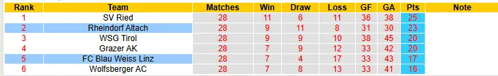 Tuy nhiên, khi mọi thứ似乎 đã trở nên tuyệt vọng, Blau Weiss Linz đã bất ngờ bật lại mạnh mẽ khi tham gia vào vòng bảng trụ hạng. Sau 6 vòng đấu, họ đã giành được 3 chiến thắng, 1 trận hòa và 2 thất bại. Với kết quả này, cùng với việc đối thủ cạnh tranh trực tiếp Wolfsberger AC đang sa sút, Blau Weiss Linz đã vươn lên vị trí áp chót trên bảng xếp hạng, nghĩa là họ đã có thể trụ hạng thành công. Với đà tâm lý đang thăng hoa và lợi thế sân nhà, HLV Mitja Morec và các cầu thủ Blau Weiss Linz tự tin sẽ giành trọn 3 điểm trong trận tiếp đón Rheindorf Altach ở vòng 7, qua đó củng cố vị trí của mình trong cuộc đua trụ hạng. Đặc biệt, Blau Weiss Linz đã thắng 2 trong 3 trận gần đây khi tiếp đón Rheindorf Altach trên sân nhà, vì vậy 3 điểm ở trận đấu này là mục tiêu hoàn toàn trong tầm tay.