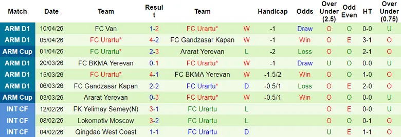 – Thống kê kết quả 10 trận gần nhất của Urartu
