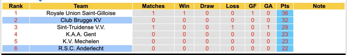 Sau khi giai đoạn đá vòng tròn kết thúc, Club Brugge và Anderlecht cùng 4 câu lạc bộ khác đã lọt vào nhóm Championship để tìm ra đội vô địch và các suất dự Cup châu Âu mùa sau. Đội khách hiện đang đứng 6 ở bảng này.