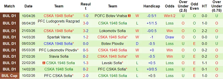 – Thống kê kết quả 10 trận gần nhất của CSKA 1948