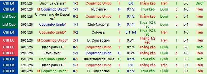 + Coquimbo Unido thắng 5 thua 3 hòa 2 trong 10 trận gần nhất ở Cúp C1 và giải quốc nội.