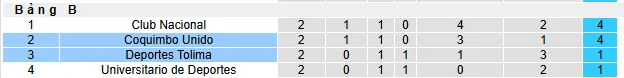 Tại bảng B Copa Libertadores năm nay, Coquimbo có 1 chiến thắng và một trận hòa, giành 4 điểm, chia sẻ hai vị trí dẫn đầu với Club National.