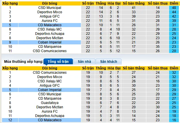 + Malacateco thắng 14 hòa 7 thua 3 trong 24 trận đón tiếp Coban Imperial trên sân nhà.