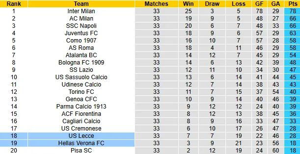 Nếu để thua Lecce đêm nay và đối thủ trực tiếp Cremonese có điểm trước Napoli, Verona sẽ chính thức xuống hạng Serie B ngay trên sân nhà. Thêm vào đó, việc chân sút chủ lực Gift Orban gặp rắc rối kỷ luật sau khi va chạm với cổ động viên càng khiến nội bộ đội bóng thêm phần rối ren.