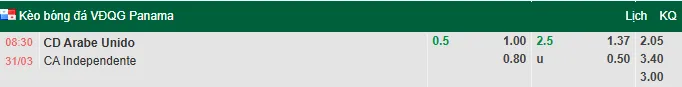Soi kèo Châu Á, nhà cái vẫn xếp Arabe Unido là đội chủ nhà được đánh giá cao hơn với mức chấp -1/2. Tuy nhiên, rõ ràng Independiente La Chorrera đáng tin cậy hơn với thành tích bất bại trong 9/10 trận đối đầu gần nhất.