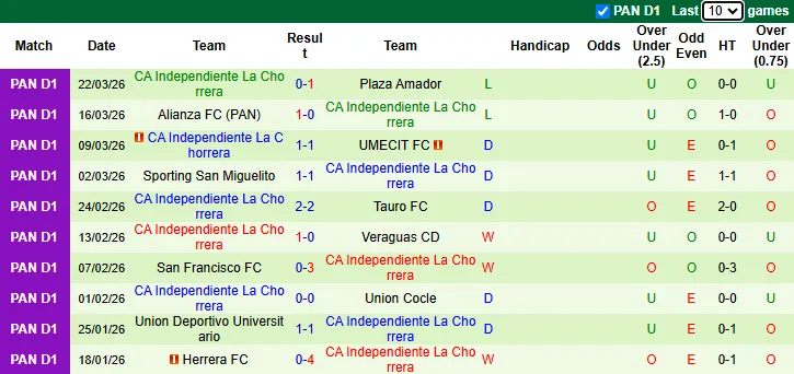 Thống kê phong độ 10 trận gần nhất của Independiente La Chorrera cho thấy họ đang duy trì một phong độ khá tốt.