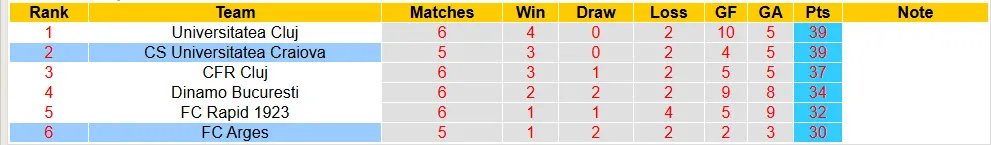Do đá muộn nhất vòng 6 bảng đấu tranh vô địch giải VĐQG Romania 2025/26, Universitatea Craiova tạm thời để kình địch Universitaea Cluj vượt mặt nắm giữ ngôi đầu bảng. Tuy nhiên, thầy trò HLV Mirel Radoi cũng không quá lo lắng bởi thực tế họ chỉ kém đối thủ cạnh tranh Universitaea Cluj đúng hiệu số bàn thắng thua và trong tay vẫn còn một trận chưa đá. Đêm nay, Universitaea Cluj có trận đấu muộn vòng 6 bảng tranh vô địch và đây là cơ hội tốt để họ trở lại ngôi đầu và tiếp tục gia tăng khoảng cách với đội cạnh tranh vô địch.