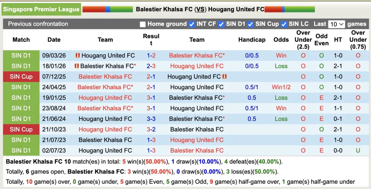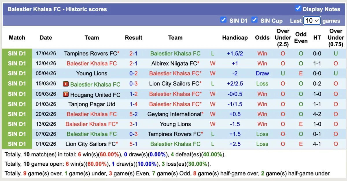 -Thống kê phong độ 10 trận đấu gần nhất của Balestier Khalsa