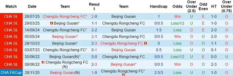 Lần gần nhất Beijing Guoan tiếp đón Chengdu Rongcheng tại Chinese Super League, chỉ có 2 bàn thắng được ghi. Trận sân nhà gần nhất của Beijing Guoan tại giải VĐQG Trung Quốc cũng chỉ có 2 bàn thắng. Do đó, bảng tỷ số của trận đấu này hứa hẹn sẽ chỉ thay đổi 2 lần.