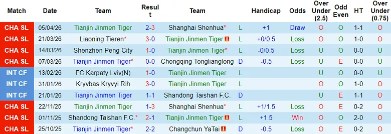 – Phân tích kết quả 10 trận gần nhất của Tianjin