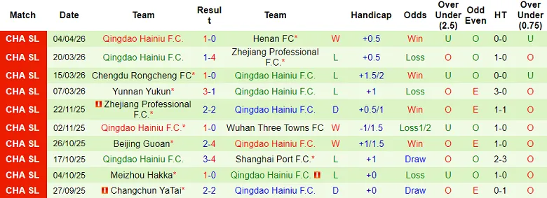 – Phân tích kết quả 10 trận gần nhất của Qingdao Hainiu