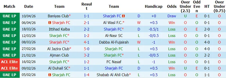 – Thống kê kết quả 10 trận gần nhất của Sharjah