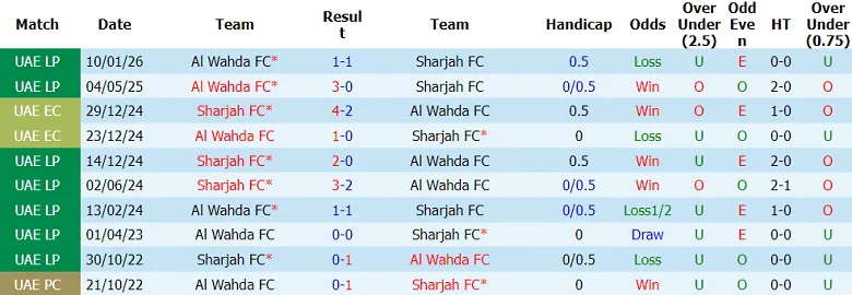 Thống kê phong độ, lịch sử đối đầu của Sharjah và Al Wahda