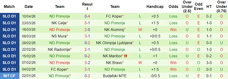 Kết quả 10 trận gần nhất của Primorje cũng cho thấy phong độ của đội bóng này.