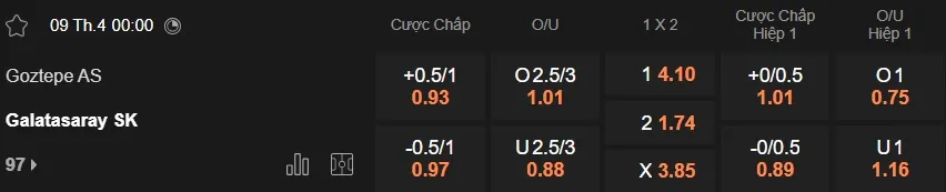 Nhận định soi kèo Goztepe vs Galatasaray, 00h00 ngày 9/4 tại giải VĐQG Thổ Nhĩ Kỳ. Phân tích tỷ lệ kèo, dự đoán kết quả Goztepe vs Galatasaray từ tỷ lệ châu Âu, châu Á qua các chuyên gia hàng đầu.