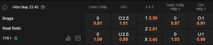 Kèo nhà cái Braga vs Real Betis