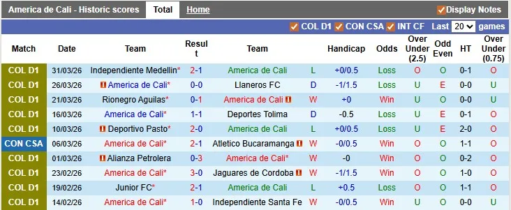 Thống kê phong độ, lịch sử đối đầu của America de Cali đấu vs Atletico Bucaramanga