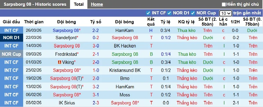 Thống kê phong độ 10 trận đấu gần nhất của Sarpsborg