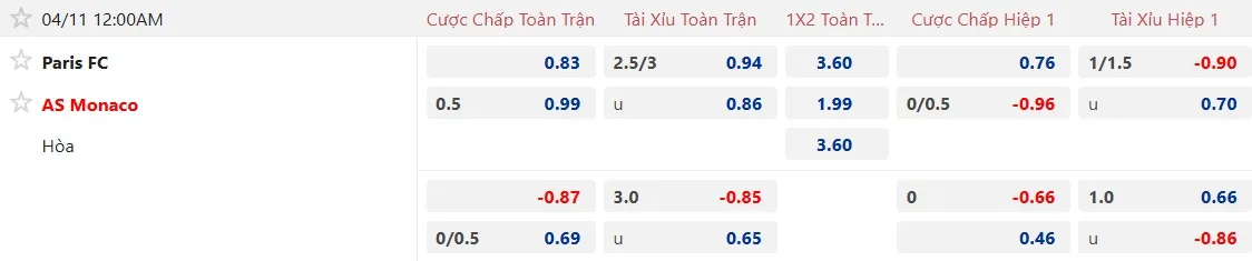 Mặc dù Paris FC đang có chuỗi trận ấn tượng theo kèo châu Á gần đây với 6 trận toàn thắng, nhưng đối thủ Monaco mới là những người có được phong độ thăng hoa bậc nhất tại Pháp ở thời điểm hiện tại khi toàn thắng kèo châu Á 9 trận liên tiếp trên mọi đấu trường, bao gồm 3 trận vượt handicap trước ông lớn PSG và mới nhất là Marseille.