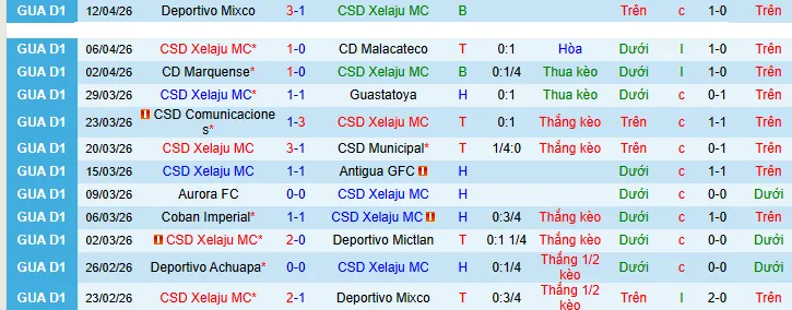 + Xelaju thắng 8 hòa 1 chỉ thua 1 trong 10 trận gần nhất trên sân nhà có mở kèo châu Á.