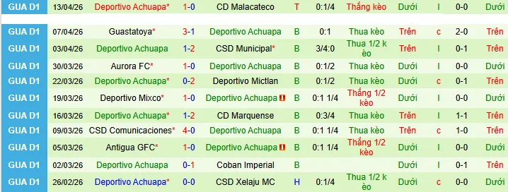 + Achuapa thắng 1 thua 4 trong 5 trận vừa qua theo kèo châu Á.