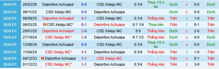 + 5/7 trận đối đầu gần nhất giữa Xelaju và Achuapa có tối đa 2 bàn thắng.