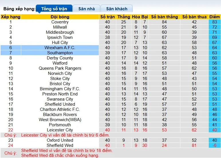 Mặc dù Southampton đang là đội bóng có phong độ tốt nhất ở Championship, nhưng sự trở lại của Wrexham vào năm 2026 mới là điều được chú ý. Đội bóng của HLV Phil Parkinson đã tích lũy được 30 điểm sau 16 trận, chỉ kém đội đầu bảng Coventry 2 điểm.