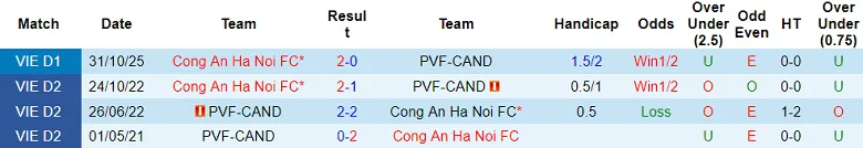 PVF-CAND đã thua 2 trong 3 trận sân nhà gần đây, trong khi Công an Hà Nội đã thắng 4 trong 5 trận sân khách gần đây thuộc giải V.League. Điều này cho thấy khả năng cao rằng Công an Hà Nội sẽ giành chiến thắng.