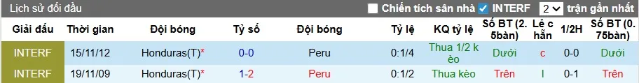 Lịch sử đối đầu Peru vs Honduras