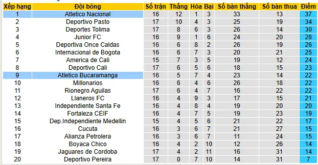 Atletico Nacional sẽ đối đầu với Atletico Bucaramanga trong khuôn khổ vòng 17 giải Apertura thuộc Primera Division của Colombia vào ngày 21 tháng 4, trận đấu bắt đầu lúc 08:30 theo giờ Việt Nam.