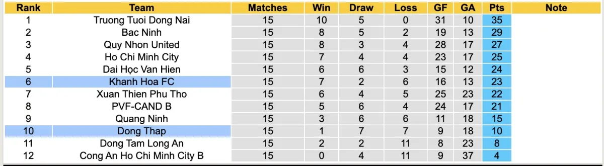 Thống kê phong độ, lịch sử đối đầu của Đồng Tháp với Khánh Hòa
