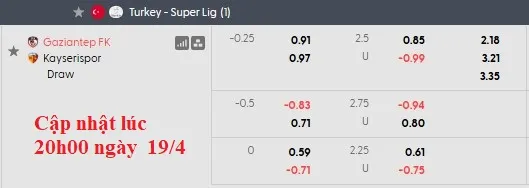 Cả Gaziantep và Kayserispor đều có 14 trận thắng kèo từ đầu mùa. Mức chấp kèo châu Á của đội chủ nhà trong trận đấu này chỉ là 1/4, điều này không mang lại sự tin cậy cho giới đầu tư.