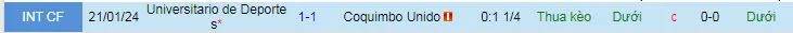 + Ở trận đối đầu duy nhất năm 2024, Universitario chấp Coquimbo Unido đến 1 1/4 trái nhưng chỉ có được tỷ số là 1-1 và là đội thua kèo châu Á.