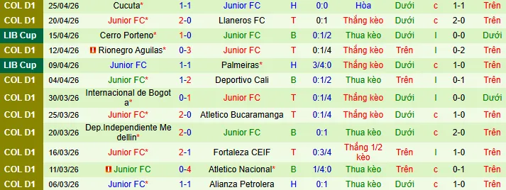Junior thắng 12 hòa 1 thua 7 trong 20 trận mới nhất trên sân khách theo kèo châu Á, một dấu hiệu tích cực cho đội bóng này.