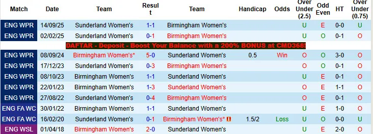 Lịch sử đối đầu Nữ Birmingham vs Nữ Sunderland