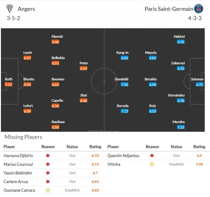 Thông tin lực lượng và đội hình dự kiến Angers vs PSG