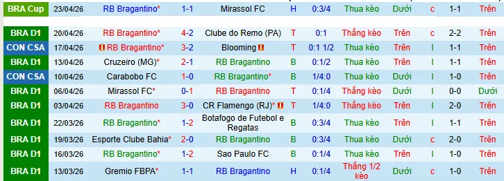 + Bragantino thua 4 trong 5 trận gần đây theo kèo châu Á.