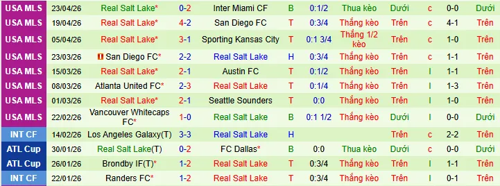 + Real Salt Lake thắng 7 trong 8 trận vừa qua theo kèo châu Á.