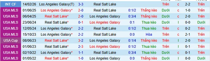 Lịch sử đối đầu LA Galaxy vs Real Salt Lake