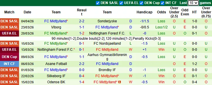 Thống kê phong độ 10 trận gần nhất của Midtjylland