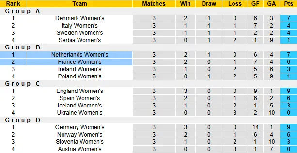 Thống kê phong độ, lịch sử đối đầu Nữ Pháp vs Nữ Hà Lan
