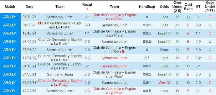 Lịch sử đối đầu giữa hai đội khá cân bằng. Trong 10 lần gặp nhau gần nhất, Sarmiento thắng 2, hòa 5 và thua 3. Tuy nhiên, trên sân của Sarmiento, đội chủ nhà lại chưa từng thắng Gimnasia trong 5 lần tiếp đón gần nhất. Chính chi tiết này khiến cuộc tái đấu lần này mang thêm sắc thái thử thách, bởi Sarmiento cần phá vỡ chuỗi kết quả kém thuận lợi ấy.