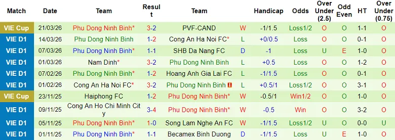 – Thống kê kết quả 10 trận gần nhất của Ninh Bình