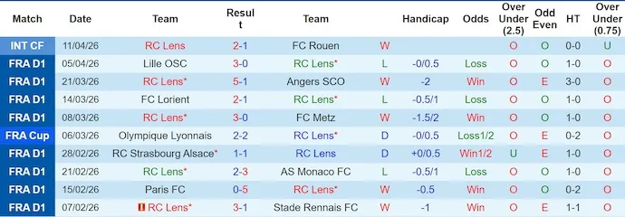 Phong độ của Lens trong giai đoạn gần đây có phần thất thường nhưng vẫn đủ sức duy trì vị thế cạnh tranh. 6 chiến thắng trong 10 trận gần nhất cho thấy đội bóng này vẫn giữ được sức bật tấn công đáng kể. Đặc biệt trên sân nhà, Lens thắng 4 trong 5 trận gần đây và phần lớn chiến thắng đều mang cách biệt rõ ràng. Khi thế trận mở ra, đội bóng này thường dồn ép rất mạnh, tạo ra cảm giác áp đảo xuyên suốt 90 phút.